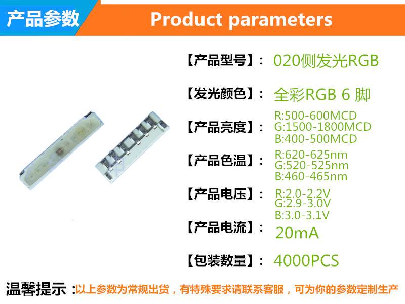 - 型号020侧发光RGB 6脚