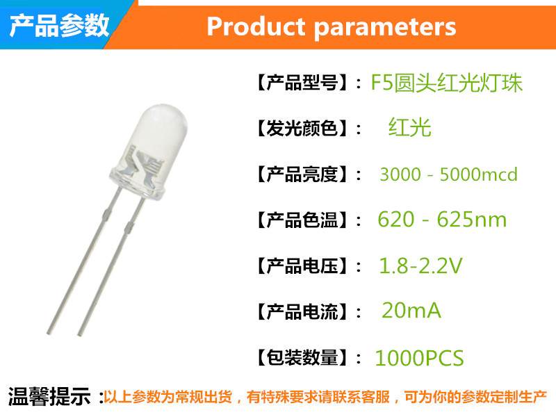 - 型号F5圆头红光灯珠