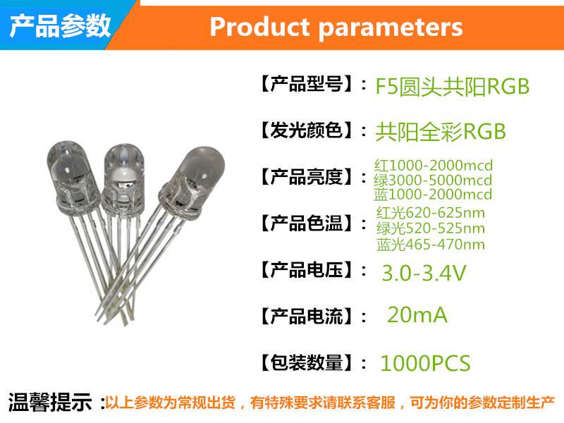 - 型号F5圆头RGB灯珠