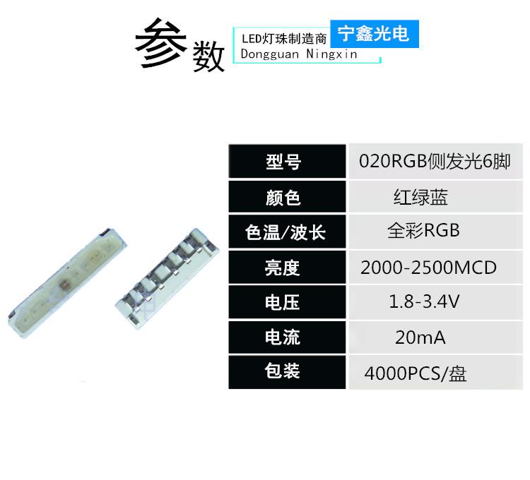 - 型号020侧发光RGB 6脚
